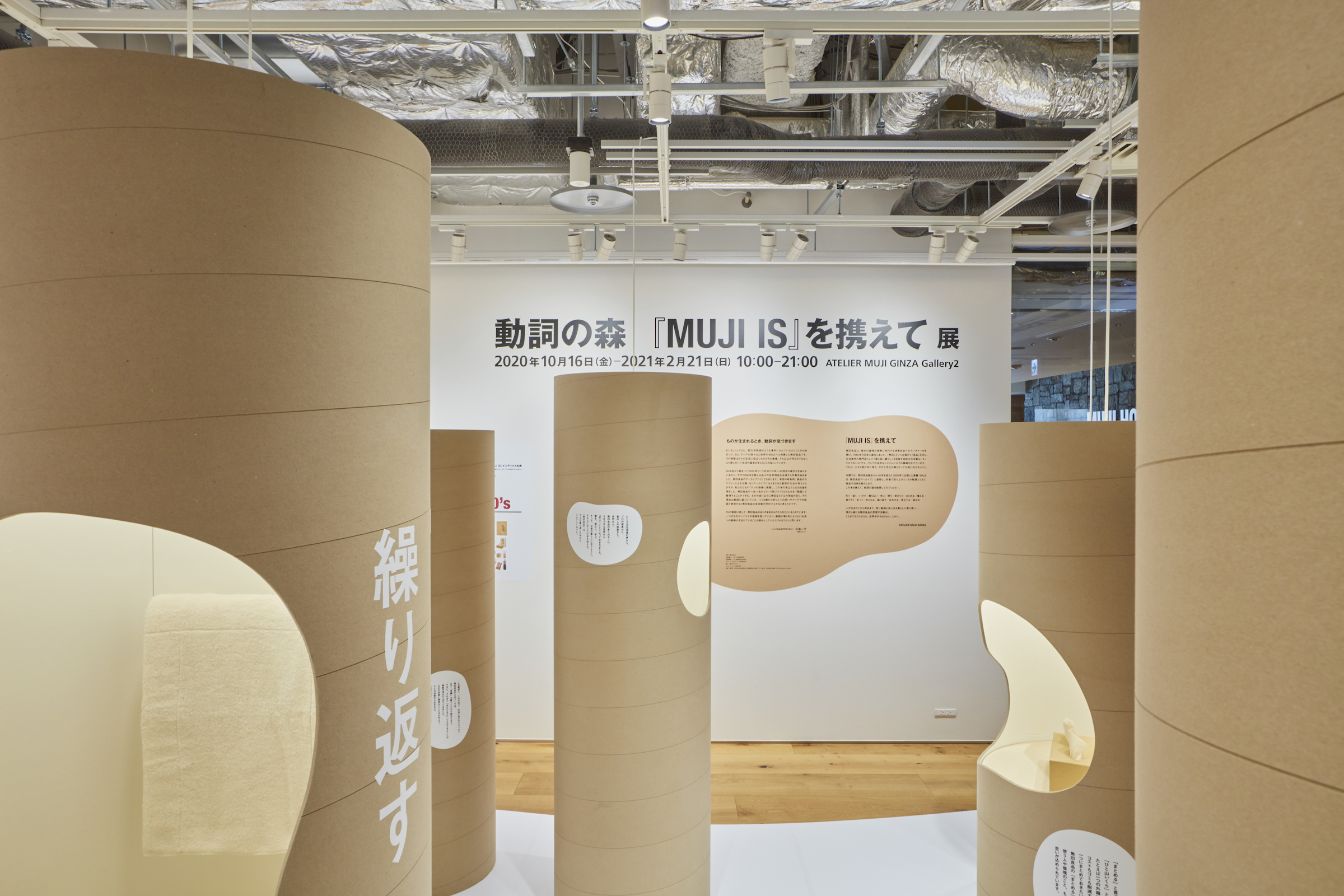 For this exhibition, we have picked 15 verbs, each related to our products and activities, from our recent book “MUJI IS” to celebrate MUJI’s 40th anniversary in 2020. So, why don’t we walk into the forest of MUJI verbs along with this book?