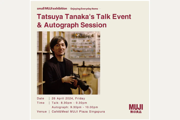 In the celebration for the launch of small MUJI exhibition at Open MUJI Plaza Singapura, the artist Tatsuya Tanaka will be presenting a talk, offering a valuable opportunity to understand his creativity and his thoughts on "Mitate".