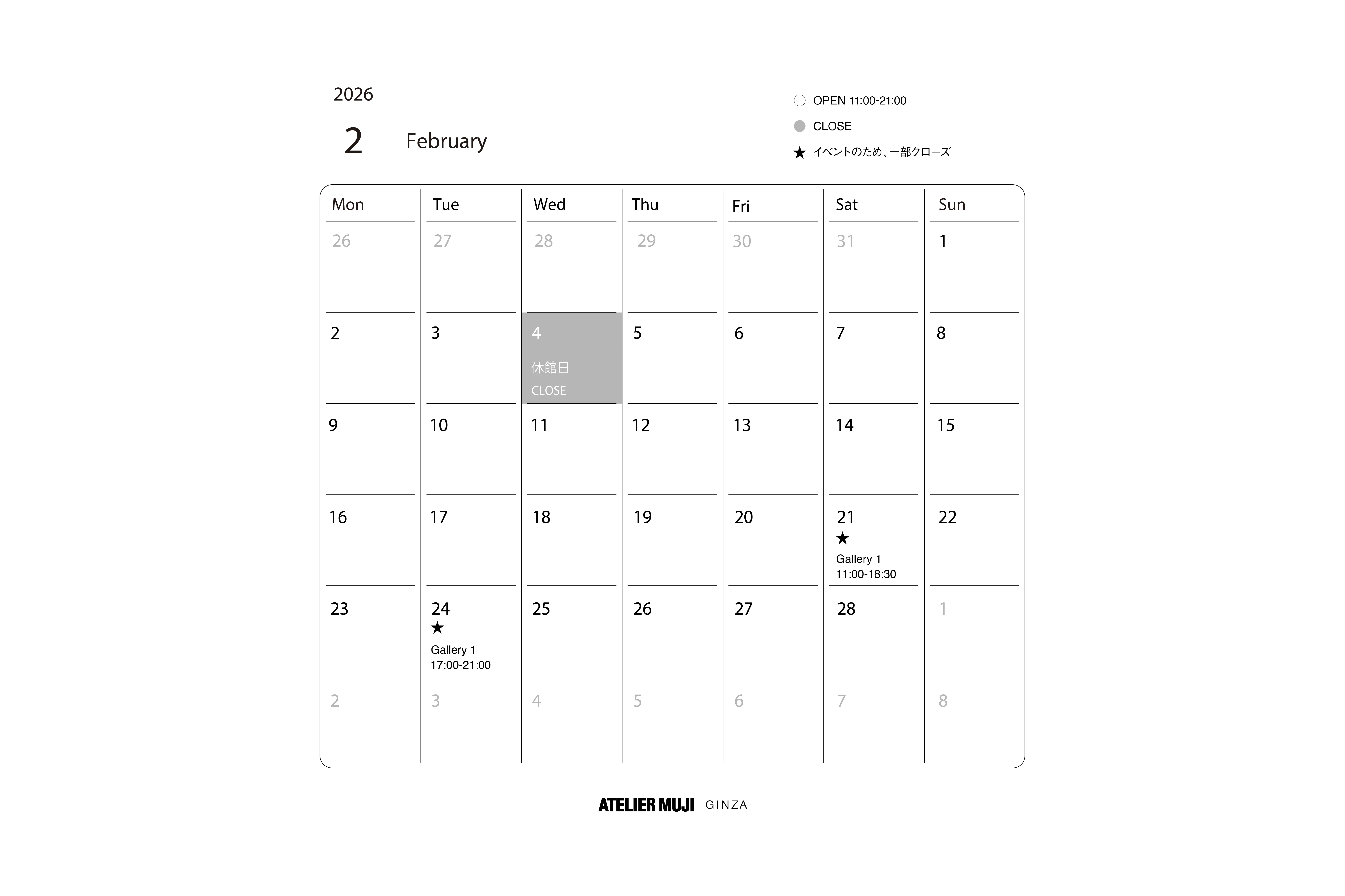 2/4(水) 全館休業