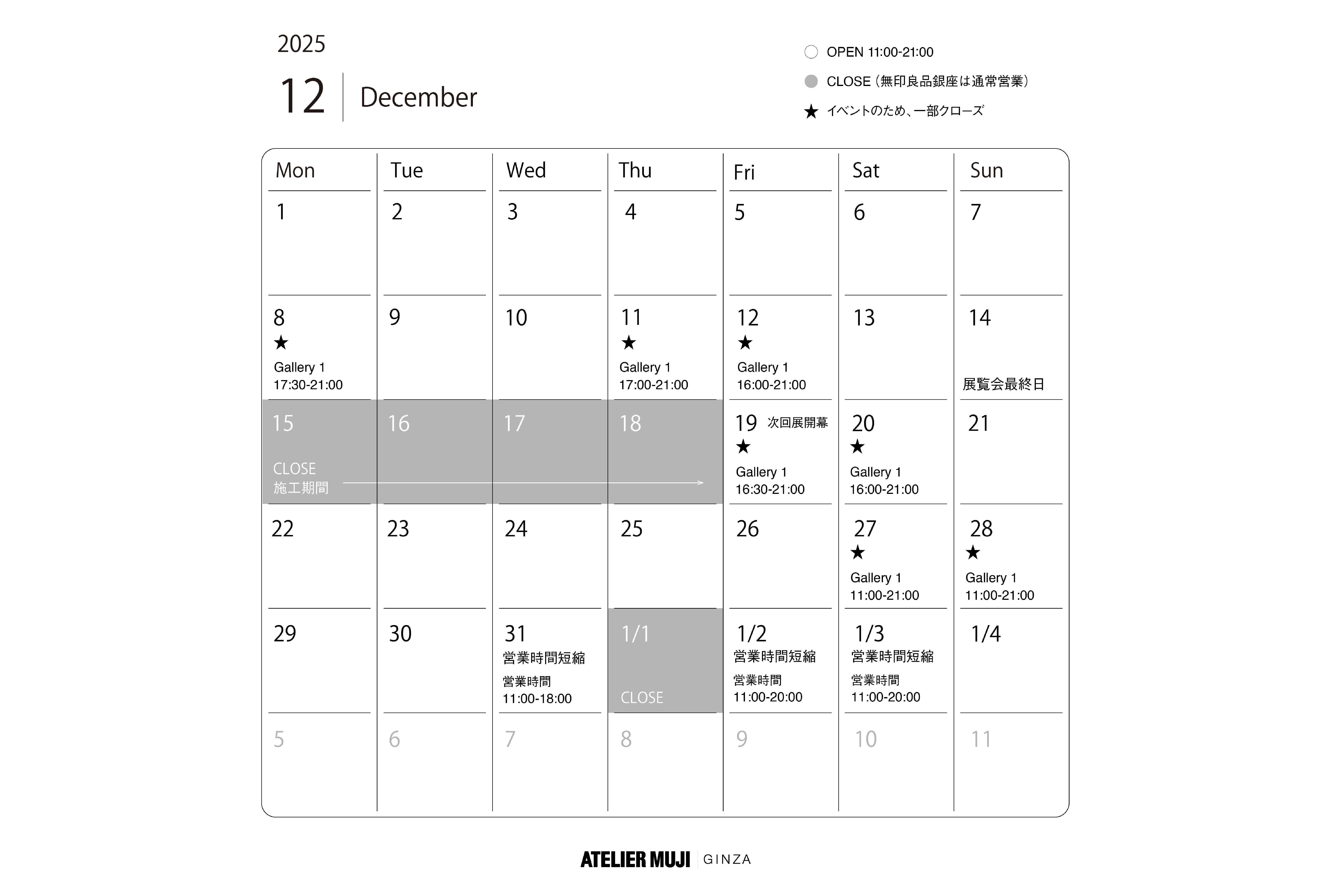 *無印良品 銀座 は通常営業です。