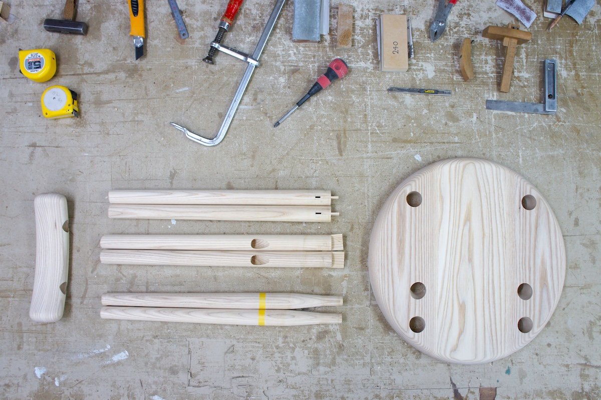 藤森:はまるでしょう。当初は現代的な素材として合板を使ってプロトタイプを作ったんですけれど、材がとても細いので、強度がやっぱり足りないっていう話になって。最終的には、フレームはアッシュ材に変えて、座面と背もたれの接合部を太くし、触るとわかるんですが、スピンドルも断面を少し太鼓状にして強度を出しています。座面は合板にアッシュの突き板を貼っています。