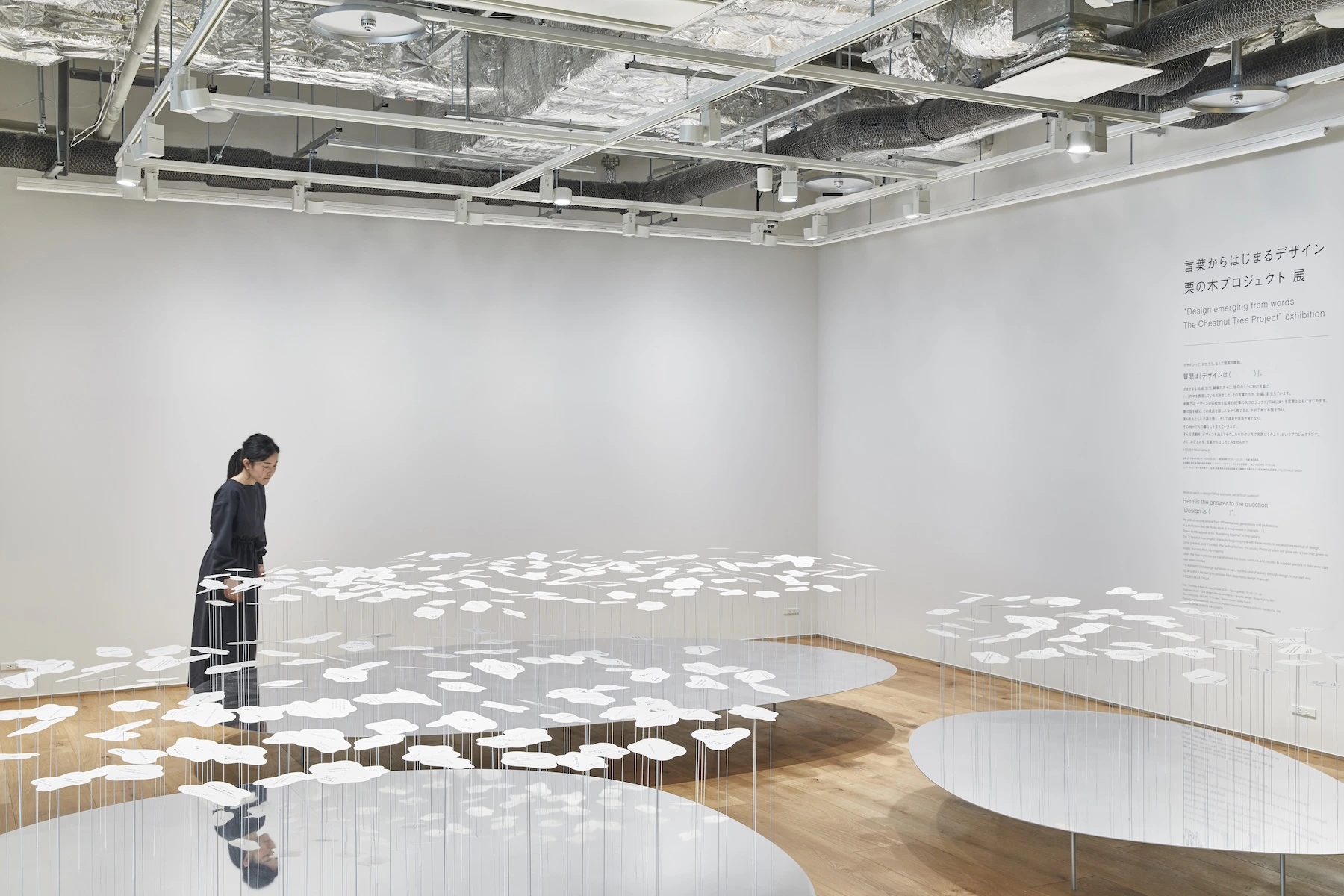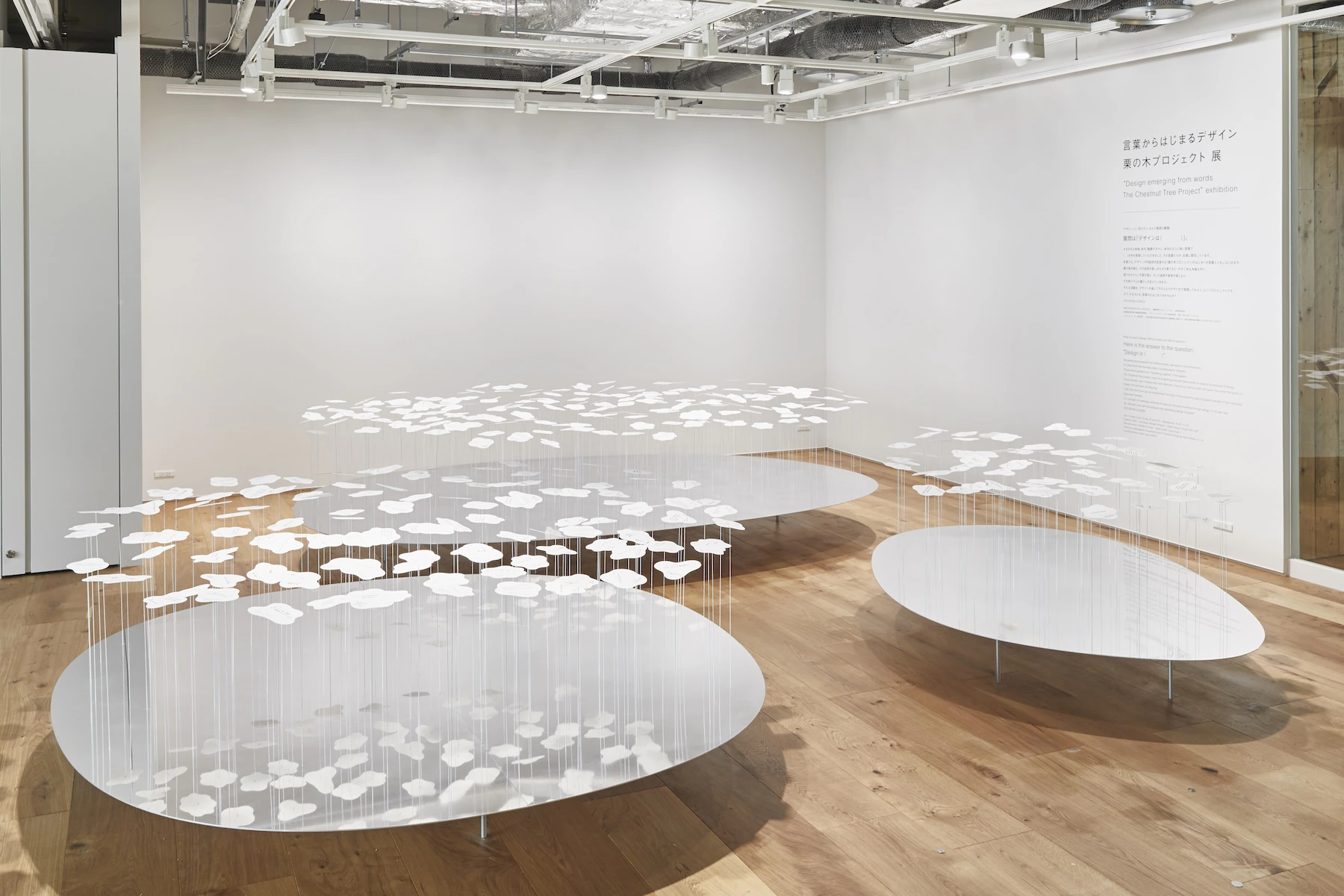 本展では、デザインの可能性を拡張する「栗の木プロジェクト」のはじまりを言葉とともに始めます。 栗の苗を植え、その成長を慈しみながら育てると、 やがて木は木陰を作り、 実りをもたらし子孫を残し、 そして道具や家具や家となり、 その時々で人の暮らしを支えていきます。 そんな活動を、デザインを通してその人なりのやり方で実践してみよう、というプロジェクトです。