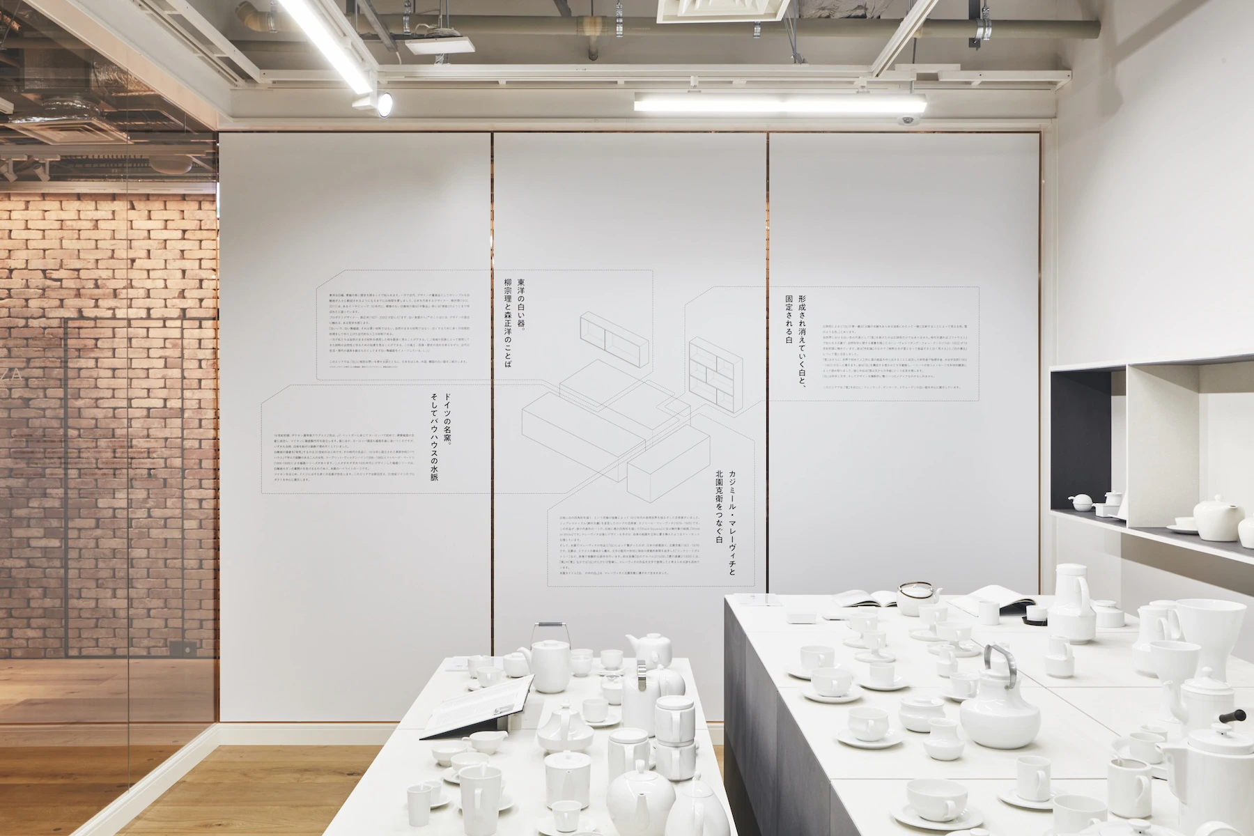 白いキャンバスに白い方形を描いた作品『White on White』(1918)で、絵画の世界に衝撃を与えたロシア、シュプレマティズムのアーティスト、カジミール・マレーヴィチがデザインした白のティーセットにはじまり、バウハウスの影響のもと、シンプルなフォルムを極めたトゥルーデ・ペートリの『ウルビーノ』シリーズ。そして、日本のプロダクトデザインの巨匠、柳宗理、森正洋らによる普段使いのモダンな白磁まで。会場には、モダンデザインの貴重なプロダクトを所蔵することで知られるインテリアデザイナー、永井敬二氏のコレクションのなかから、白い器を中心に50点以上が一堂に会します。