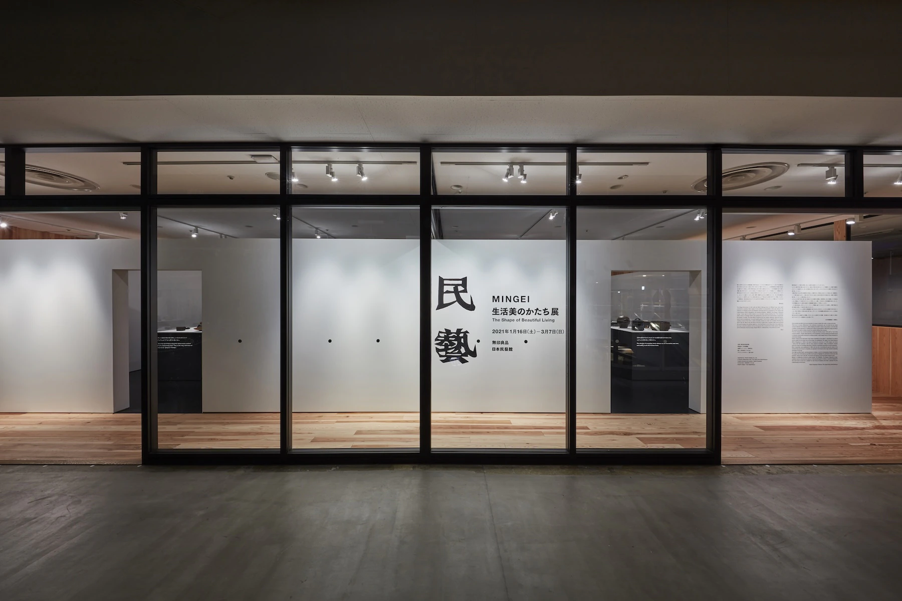 異なる時代に生まれた民藝運動と無印良品は、それぞれが消費社会において、流行や生活様式の変化を受けながら自らの原点に問いを投げかけ続けてきました。この移動展覧会「民藝 MINGEI 生活美のかたち展」は、未来の無印良品に向けた新たな旗を立てるべく、日本民藝館の協力を得て民藝の美に学びながら、これからの道しるべを見出すためのメッセージを創造していく展覧会です。