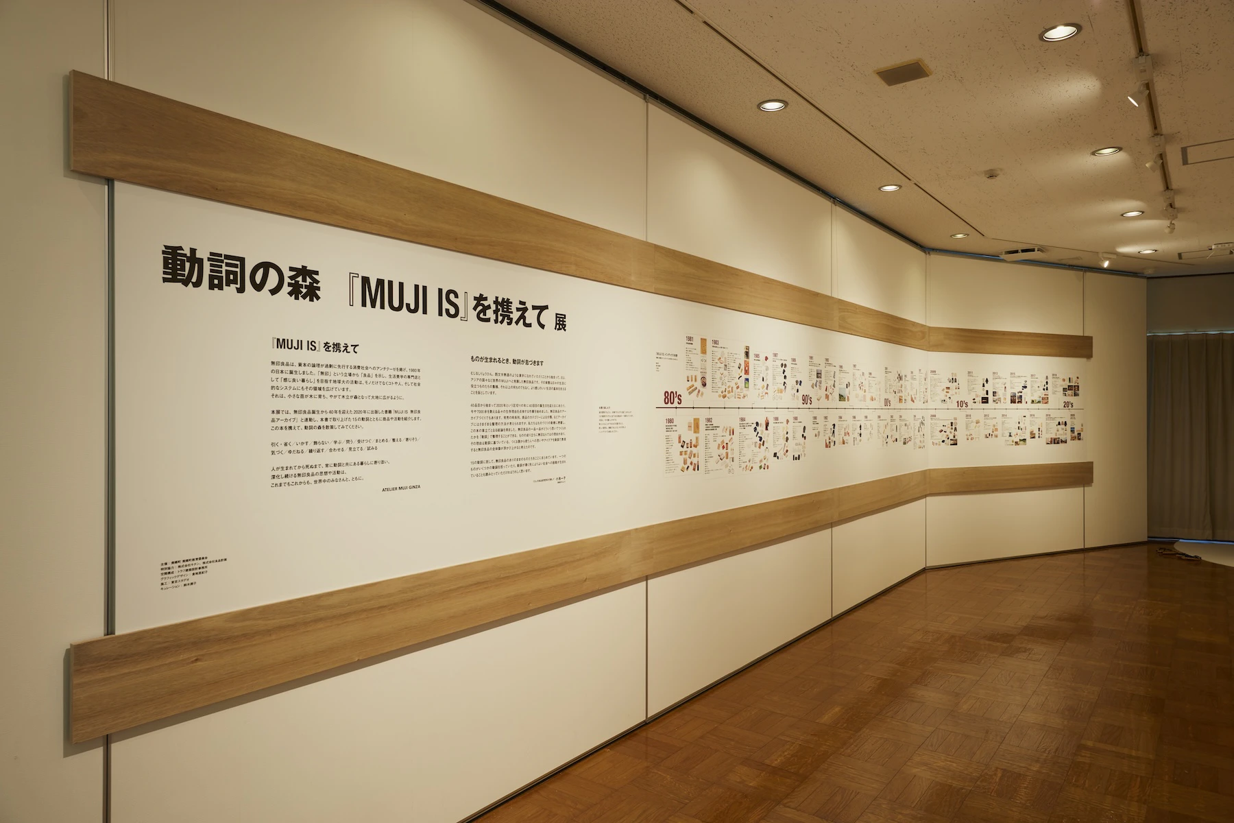 本展では、無印良品誕生から40年を迎えた2020年に出版した書籍『MUJI IS 無印良品アーカイブ』と連動し、本書で取り上げた15の動詞とともに商品や活動を紹介します。