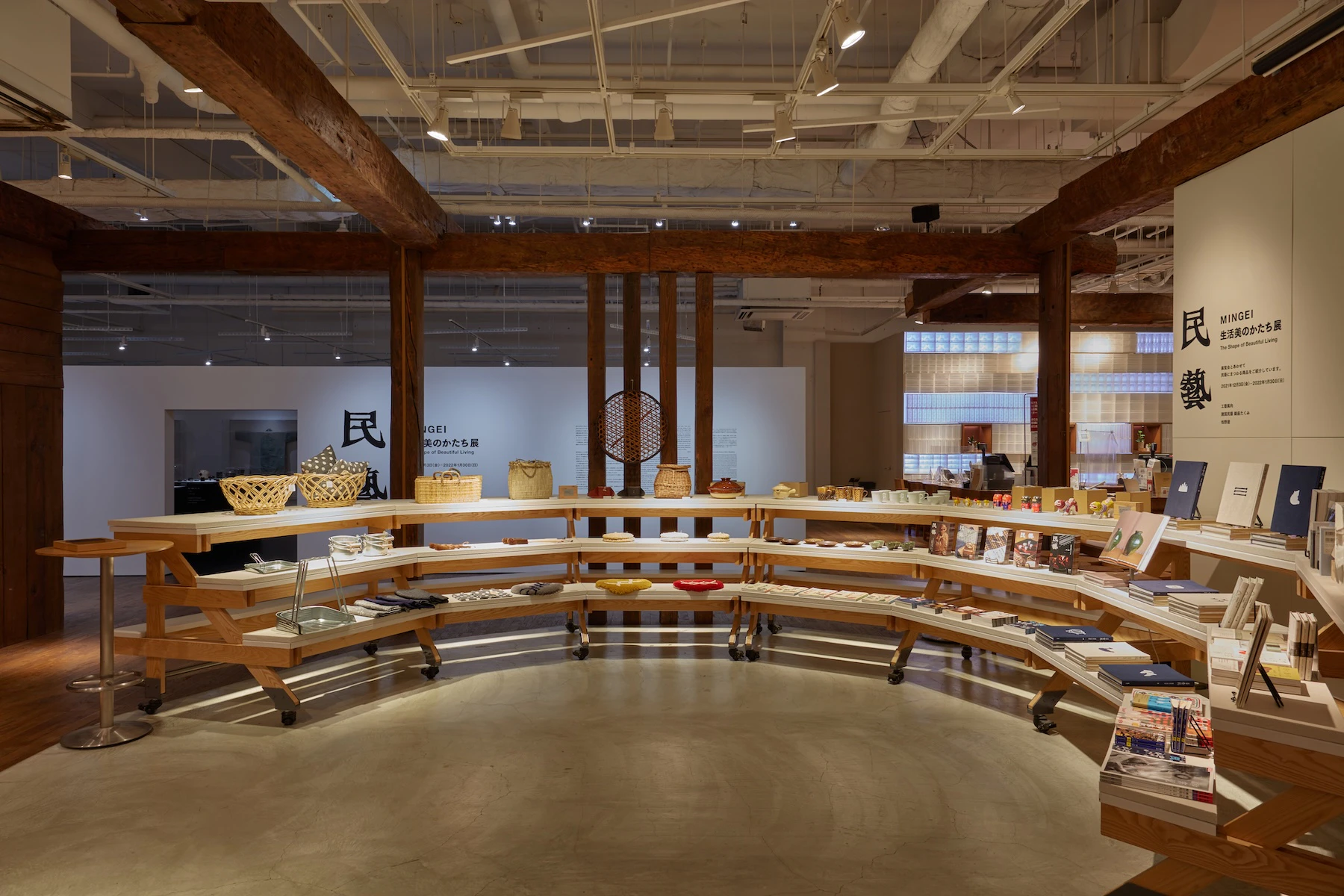 異なる時代に生まれた民藝運動と無印良品は、それぞれが消費社会において、流行や生活様式の変化を受けながら自らの原点に問いを投げかけ続けてきました。この移動展覧会「民藝 MINGEI 生活美のかたち展」は、未来の無印良品に向けた新たな旗を立てるべく、日本民藝館の協力を得て民藝の美に学びながら、これからの道しるべを見出すためのメッセージを創造していく展覧会です。