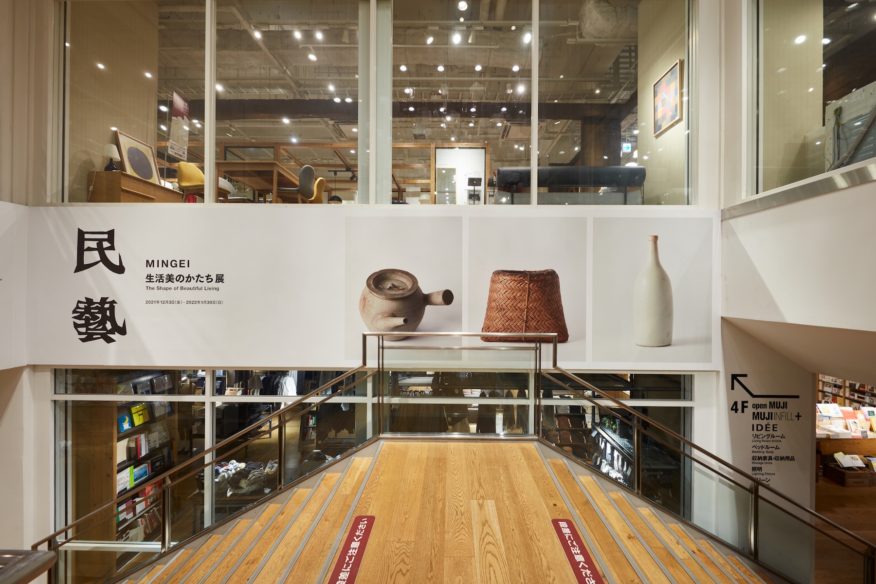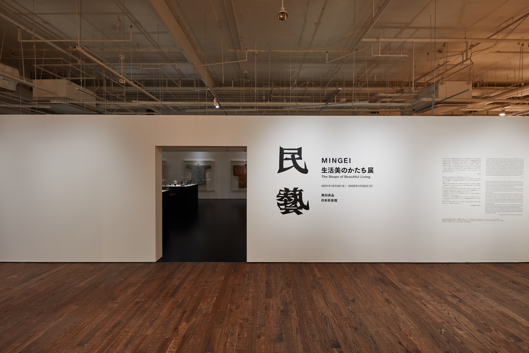 異なる時代に生まれた民藝運動と無印良品は、それぞれが消費社会において、流行や生活様式の変化を受けながら自らの原点に問いを投げかけ続けてきました。この移動展覧会「民藝 MINGEI 生活美のかたち展」は、未来の無印良品に向けた新たな旗を立てるべく、日本民藝館の協力を得て民藝の美に学びながら、これからの道しるべを見出すためのメッセージを創造していく展覧会です。
