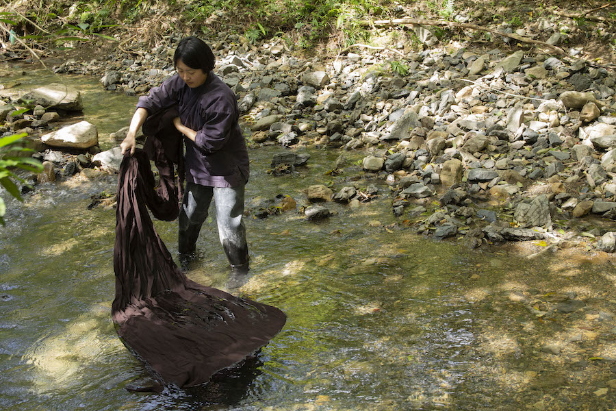「Craft Portrait」(簑島さとみ+ポリン・アグストーニ)は、大島紬の「黒」で知られる奄美大島の伝統工芸「泥染め」のプロセスを作品にしたインスタレーションです。工房KANAIKOUGEIの金井志人さんとデザイナー二人が語ります。