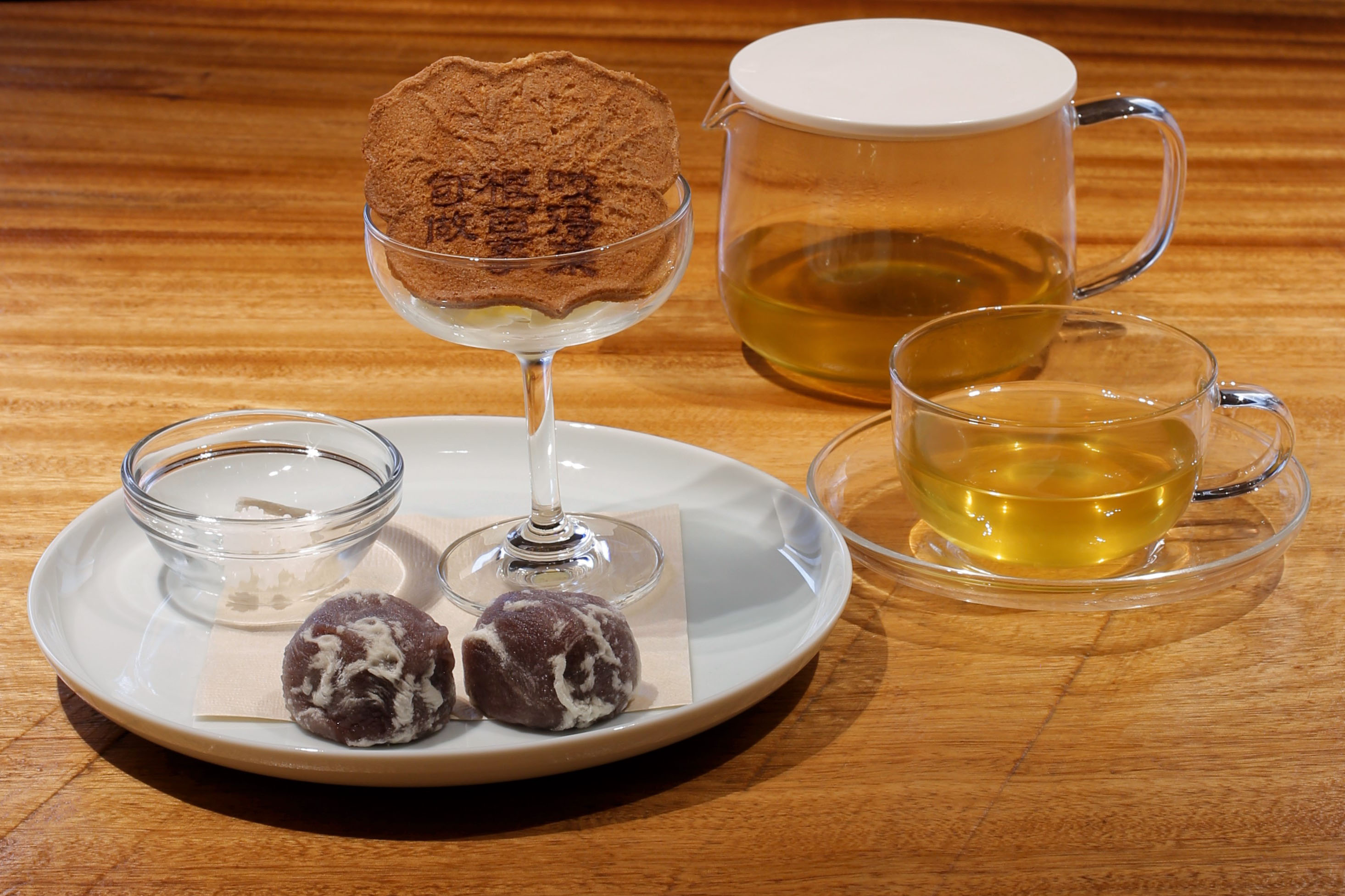 展示で紹介されているいくつかのお菓子に合わせて、長尾智子さんがセレクトしたお茶を楽しめます。出会ったお菓子を想いながら、ほっと一息、くつろぎのひとときをお過ごしください。