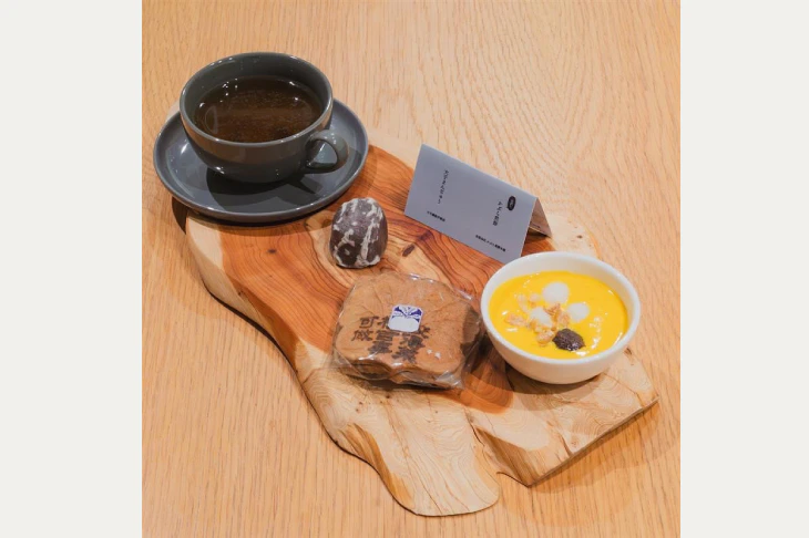 展示で紹介されているお菓子とお茶を楽しめます。出会ったお菓子を想いながら、ほっと一息、くつろぎのひとときをお過ごしください。