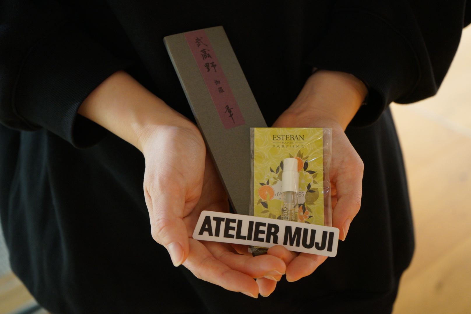 さらに会期中は、アンケートとあわせてATELIER MUJI公式インスタグラムをフォローしていただいた方全員に、展覧会特別ギフトをご用意しています。*香十銀座本店でサンプル(お香)、もしくは ESTEBAN GINZAでサンプル(ミニルームスプレー)に引換できるチケットです。